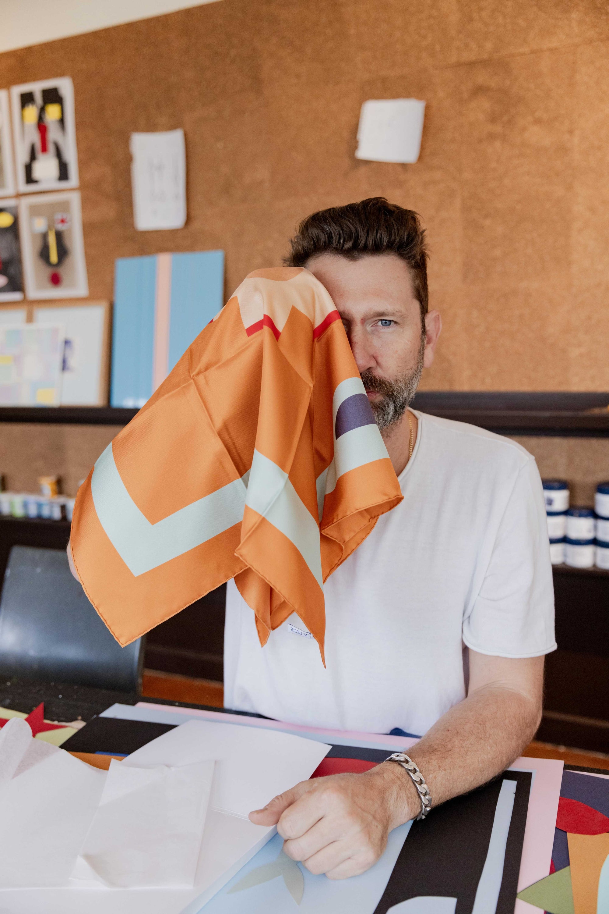 LA TÊTE x Daimon Downey 100% silk twill Scarf Made in France