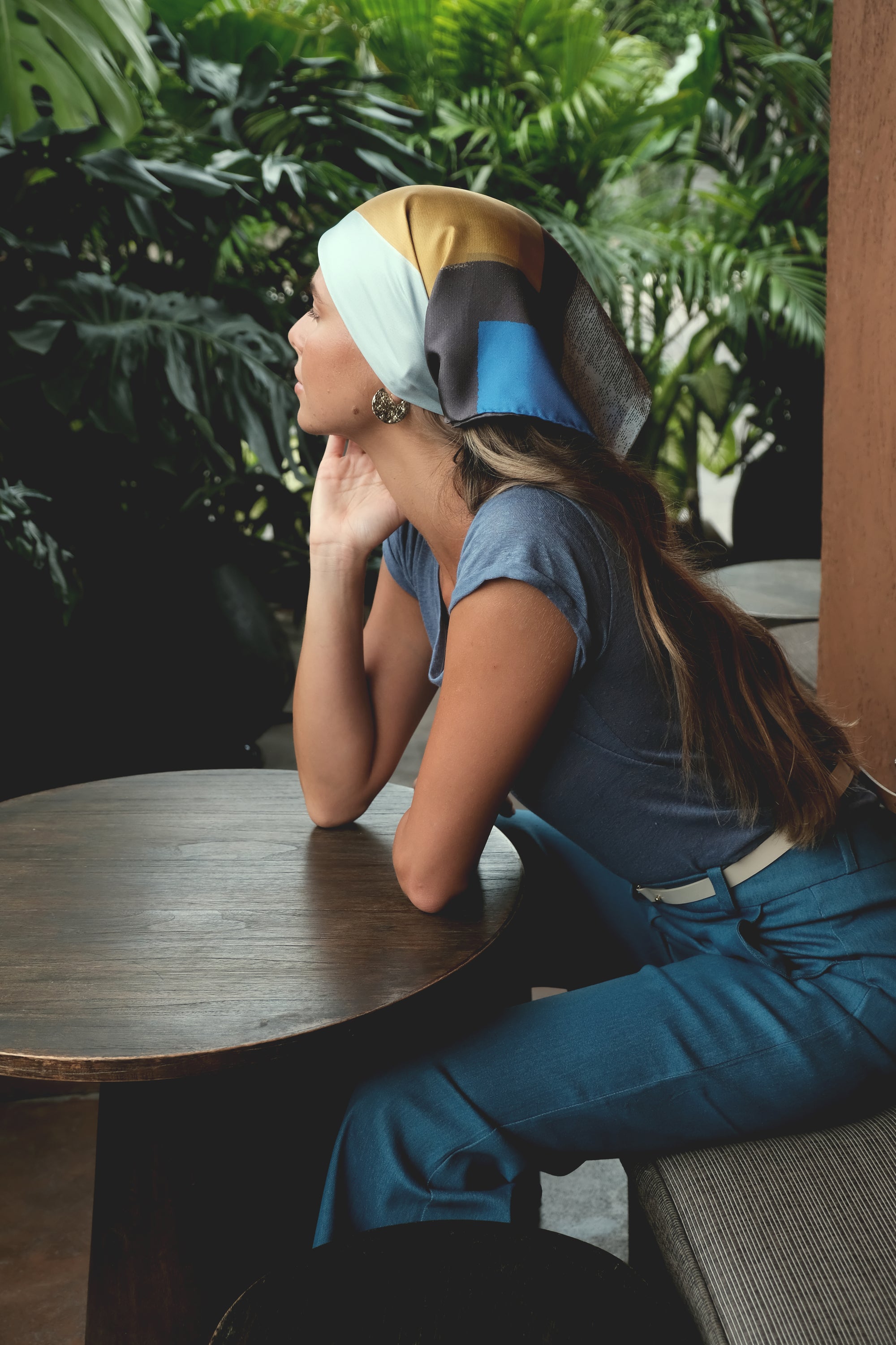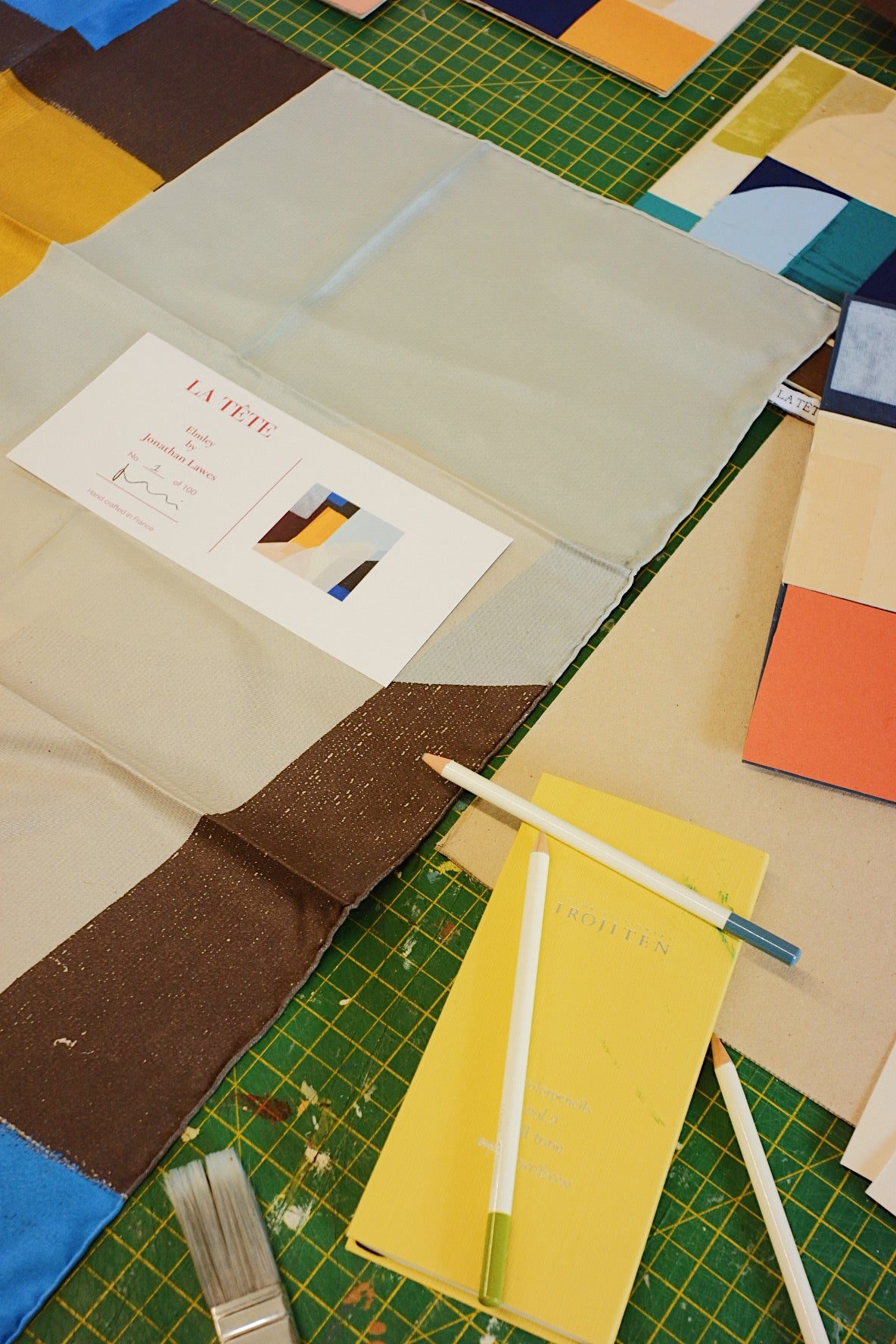 LA TÊTE x Jonathan Lawes 100% silk twill Scarf Made in France